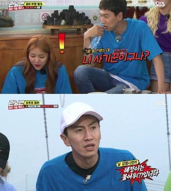 韩国综艺《Running Man》最新一期中,节目邀请了雪炫、慧晶、多荣和珠伊等嘉宾参加,当时李光洙和慧晶一组,由于游戏要求找到僵尸成员,所以大家都很努力猜测彼此的身份。 李光洙知道自己不是僵尸,所以李光洙和梁世灿、升润换了搭档之后,认定曾经搭档慧晶有可能是僵尸带原者,于是李光洙冷笑一声,说慧晶原来是花蛇。