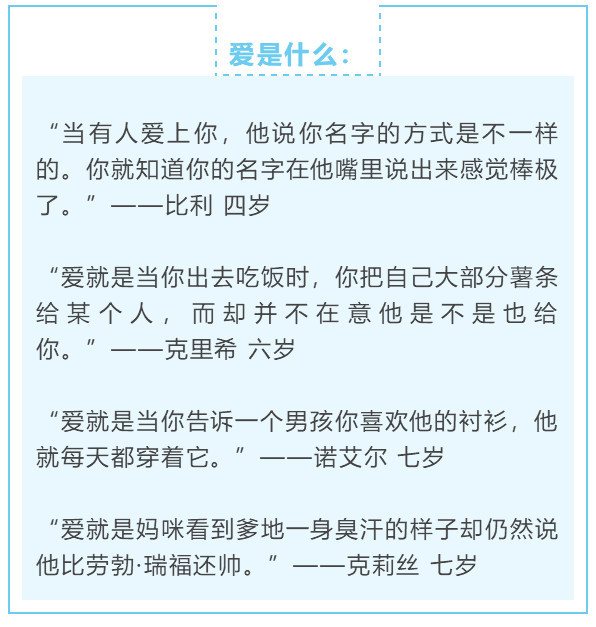 可见爱情在孩子的眼中是单纯的,它可能是一件玩具、一个微笑、一份薯条。可是当爱情视角转向大人时,“爱”就夹带些许的黑暗,像双面镜般拥有着两面性。一面是“拯救性”,照出爱人的“帅与美”;另一面却更看重爱情的“现实性”。我们向爱人提出更多的要求:有房、有车、年薪百万……所以成人要在爱情里找到“合适对象”真的很难。