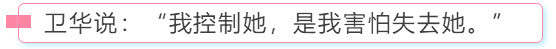 由此可见卫华属于典型焦虑型依赖性格,心底泯灭了自己的优势价值,把自己放在爱情的低位,让情侣关系失去平衡。另一方面看他也在不断附加压力枷锁,消耗女友美好的感情体验。