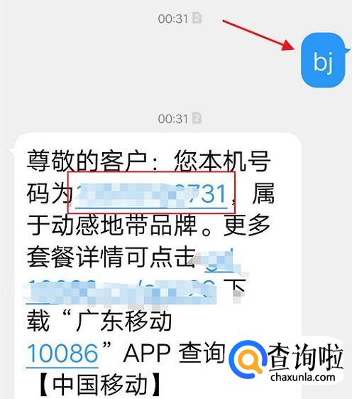 手机编辑短信“bj”,发送到10086即可,发送完成后,移动系统会把本机的手机号码短信发回。