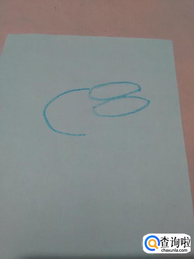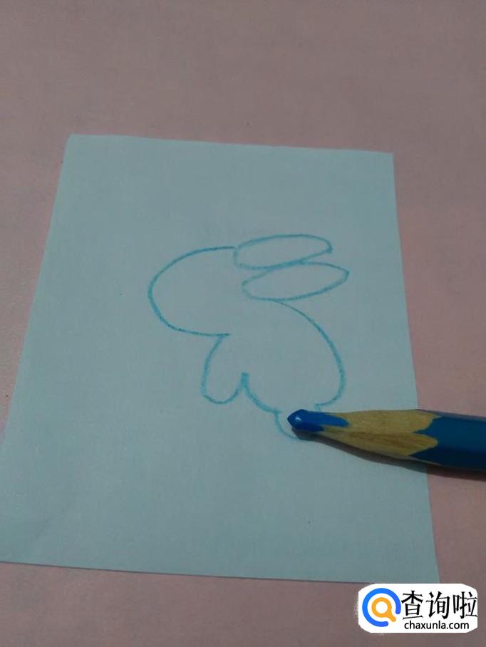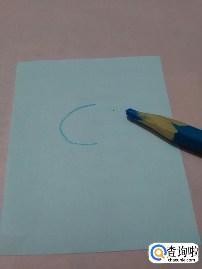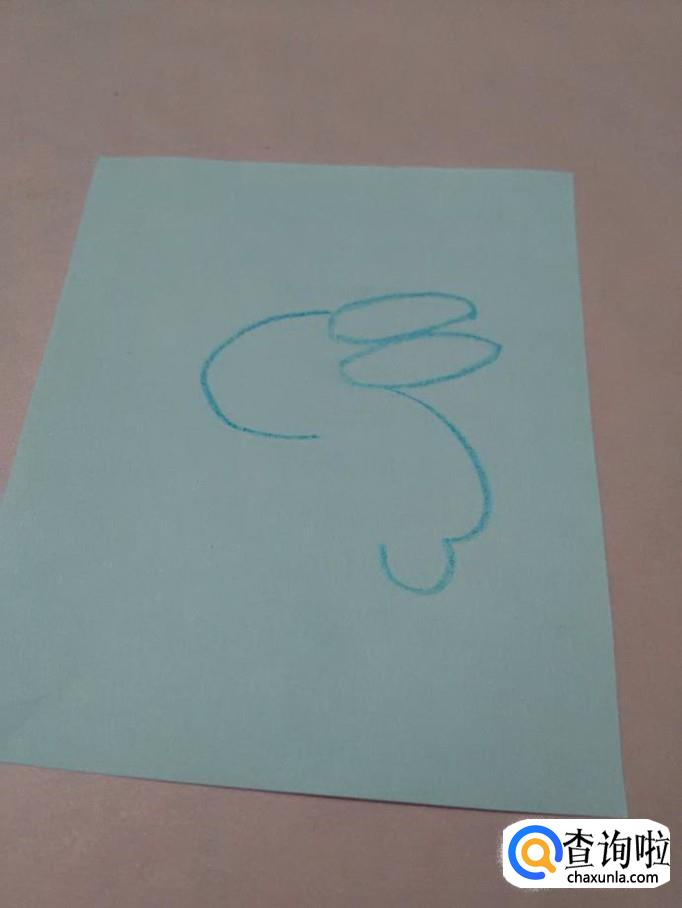 先用蓝笔在纸上画一条弯弯的弧线,表示玉兔的头。