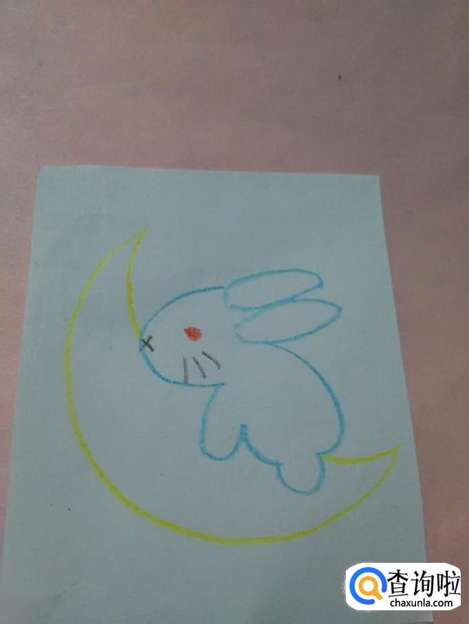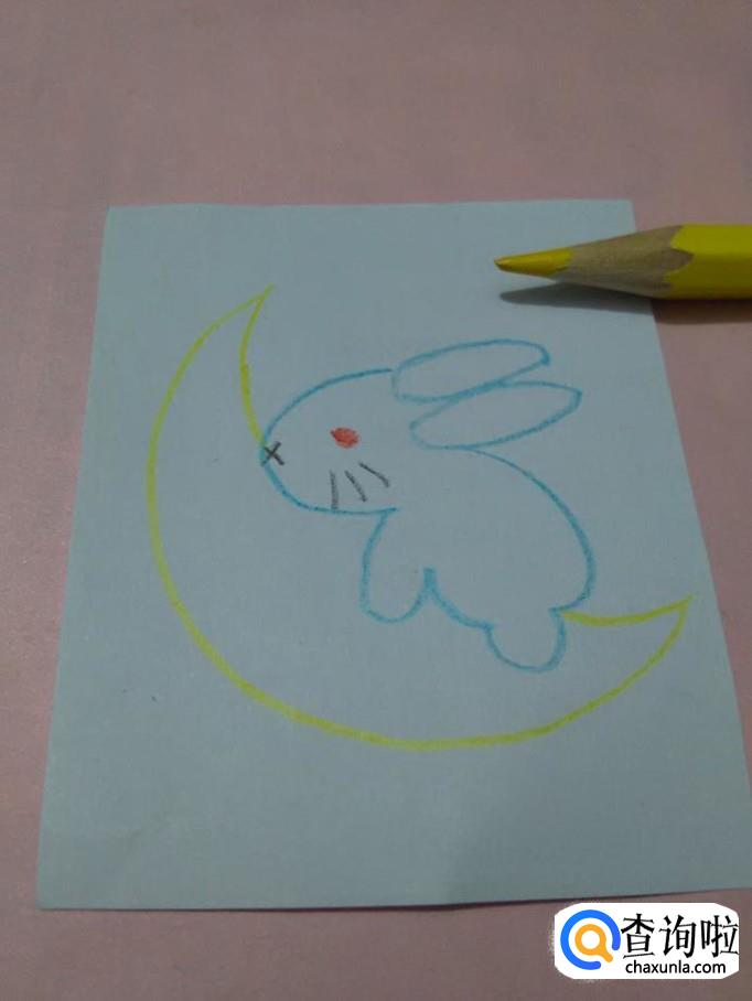 最后,在玉兔的下方,画一个大大的月牙形状,表示月亮,玉兔就画完了。