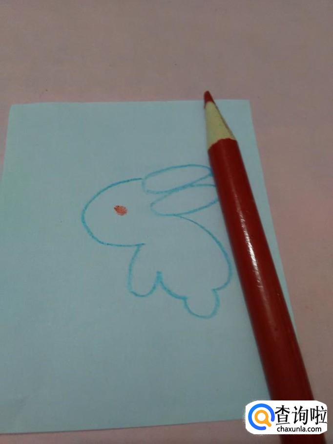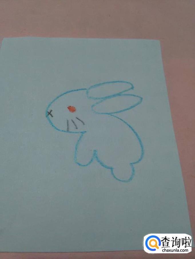 在耳朵下面,画一个3,表示玉兔的背和后腿。