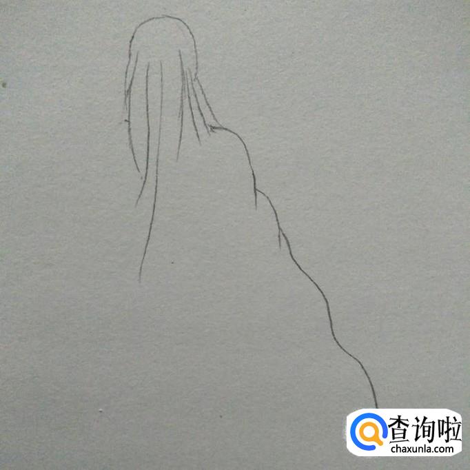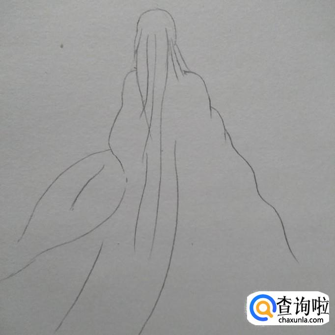 然后增加衣服的弧线,使衣服看起来更加自然,接下来,勾勒出飘逸的长发