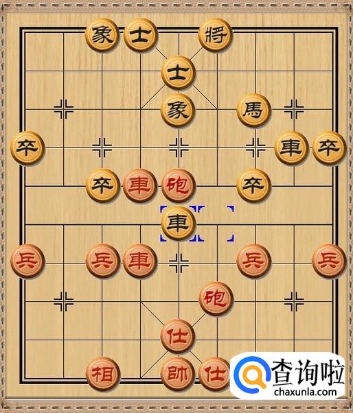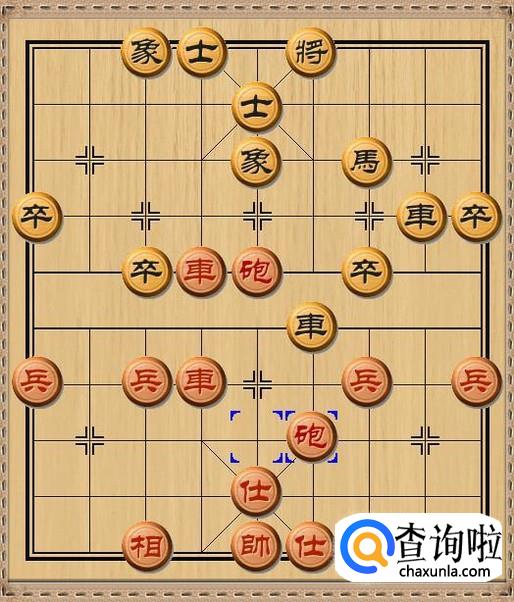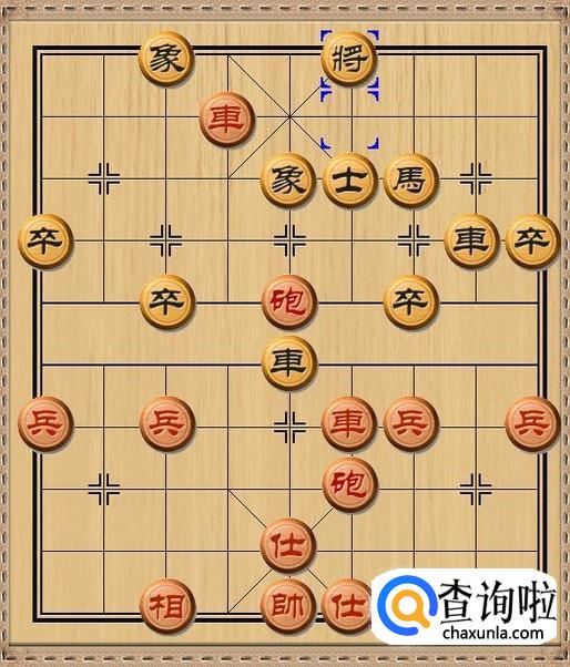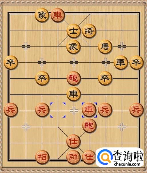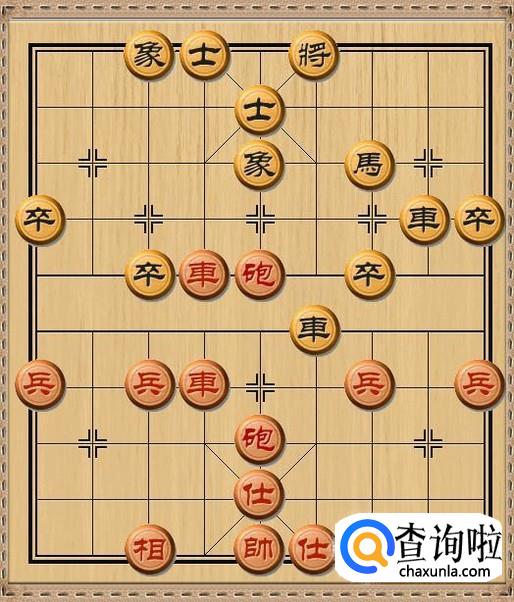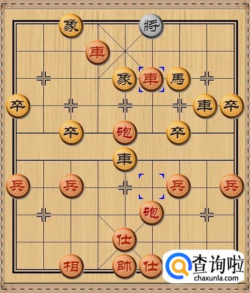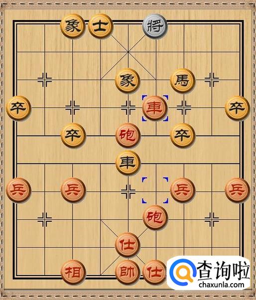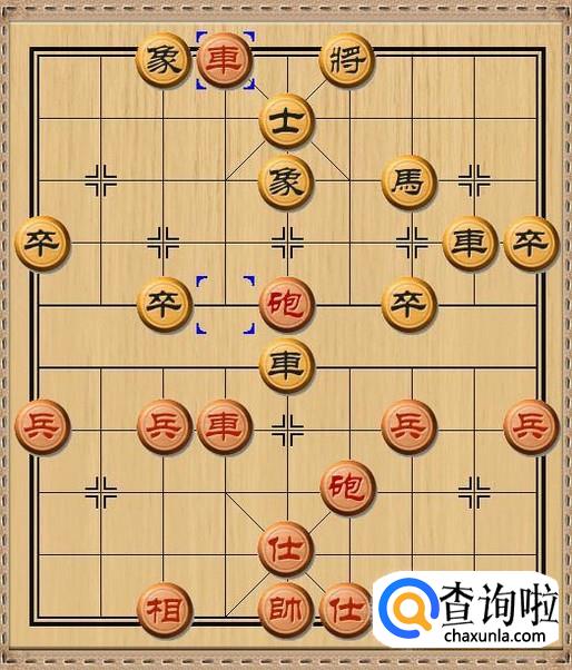 红方先行,红方后炮平四,红方后炮移动到黑方老将的当头,利用黑方车作炮架,红炮将军。如图所示。