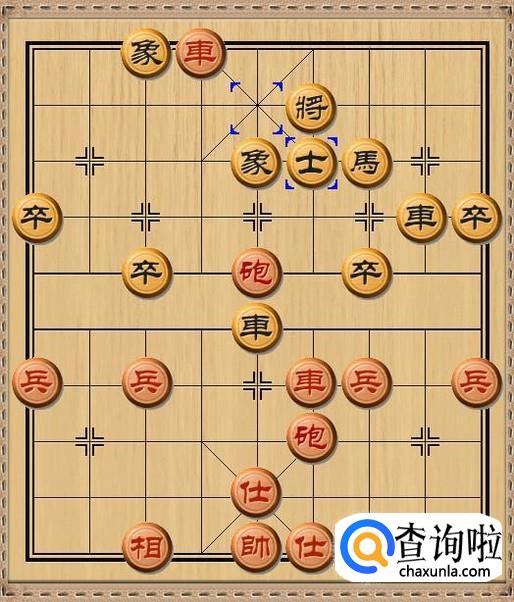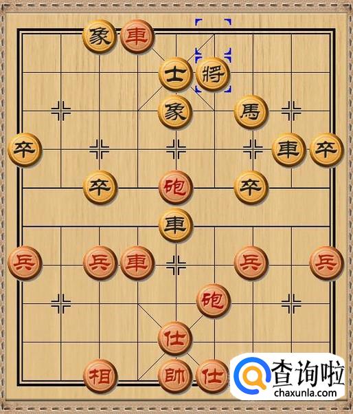 红方前车进四,红方前车出人意料的下到底线,砍掉了黑方士,红方车将军。如图所示。