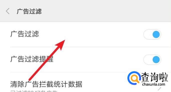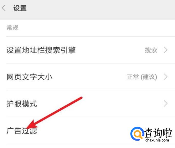 打开了设置页面,点击上面的‘广告过滤’