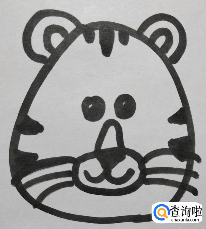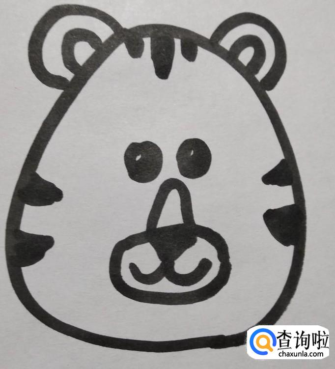 老虎是百兽之王,天然的带有霸气。所以我们在画老虎的简笔画时,也要画的威风凛凛。我们先来画出老虎的头部轮廓线,老虎的头部是一个上小下大的形状。