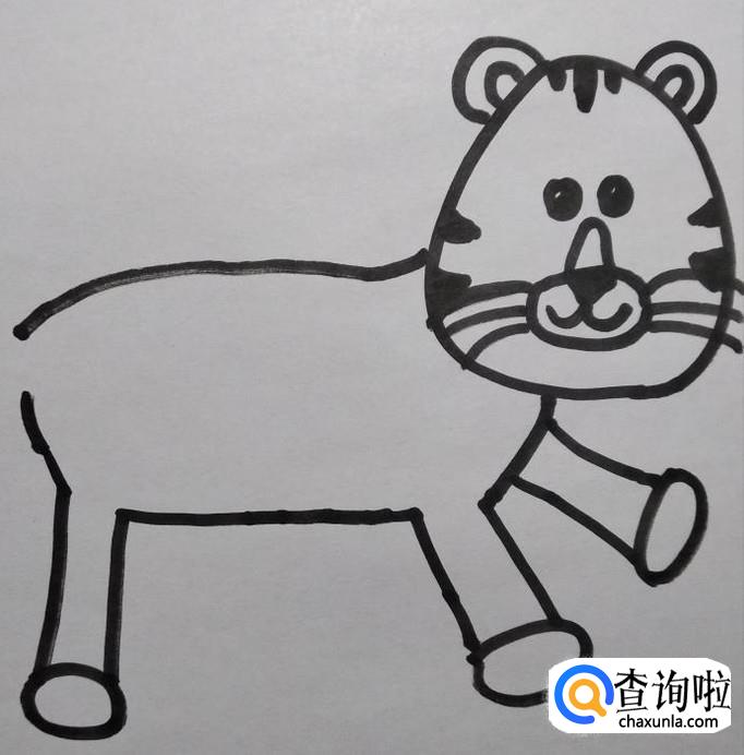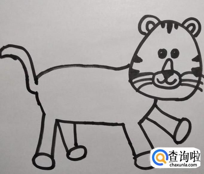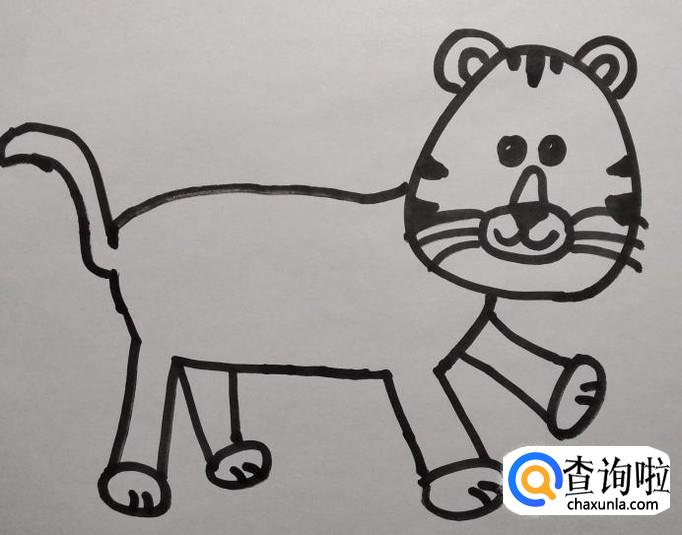 画出老虎身体上的花纹,老虎背上的花纹稍粗一些,显得老虎更霸气。老虎的简笔画就完成了!
