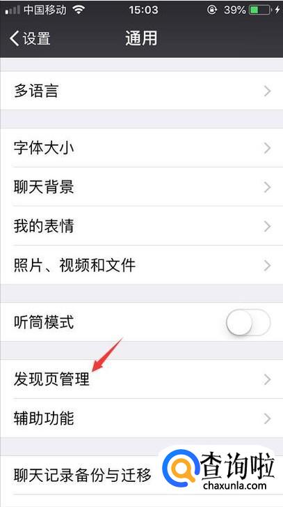 然后往下拉,我们会看到一个发现页管理的入口,点击一下。