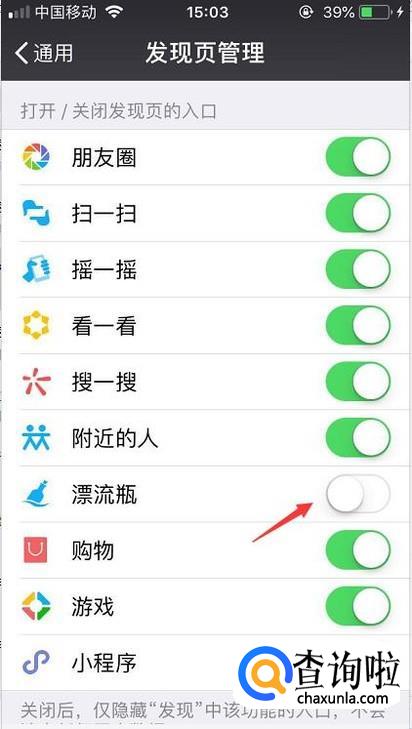 最后我们只需要把漂流瓶的选项关闭即可。