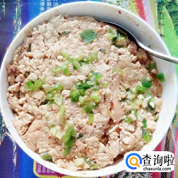 半个小时后将淀粉、鸡蛋放入腌制好的肉泥中,再搅拌均匀。
