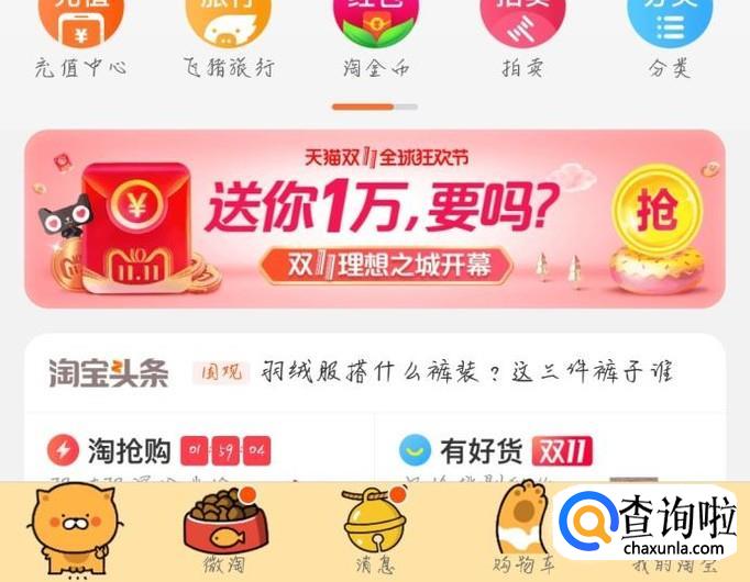 如果在淘宝上充值话费未到账,我们就打开淘宝,在主页面我们可以看到“我的”选项。