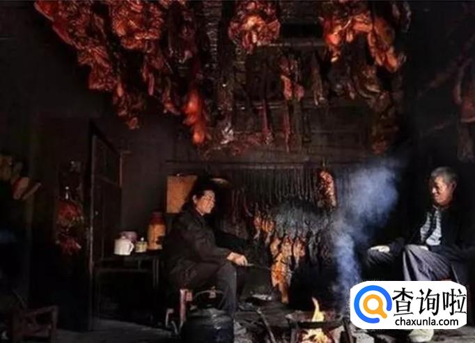 接下来就是熏制,可以挂在灶房上,熏半个月。