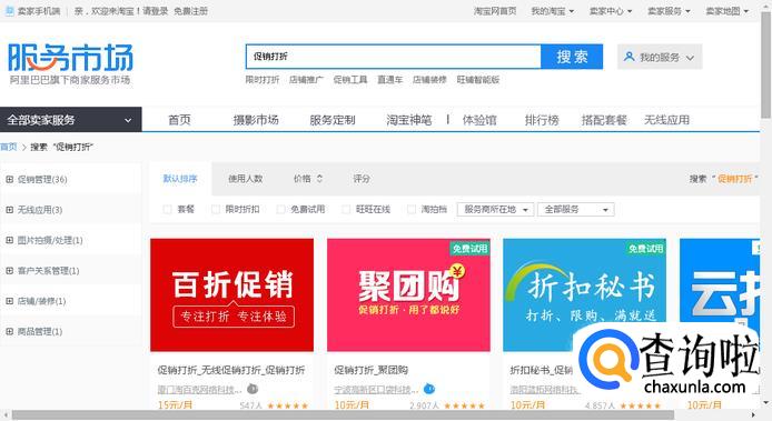 然后我们在顶部搜索“折扣”“促销”等文字来进行搜索。其实很多的服务都是可以在这里搜索的,大家可以根据自己的需要进行搜索。