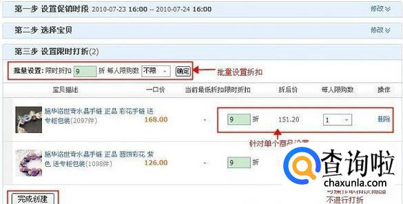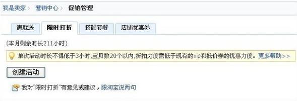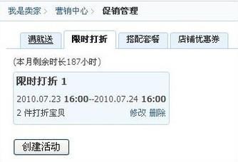 设置限时打折活动内容。