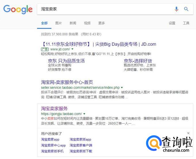 搜索淘宝卖家,选择“淘宝卖家服务”官网。
