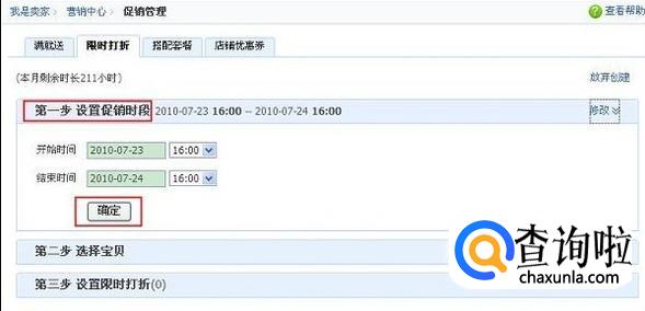 设置限时打折的活动时间段。