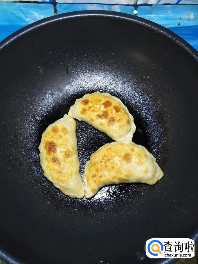 平底锅刷油,油热后,将饺子放入锅中,小火慢煎。