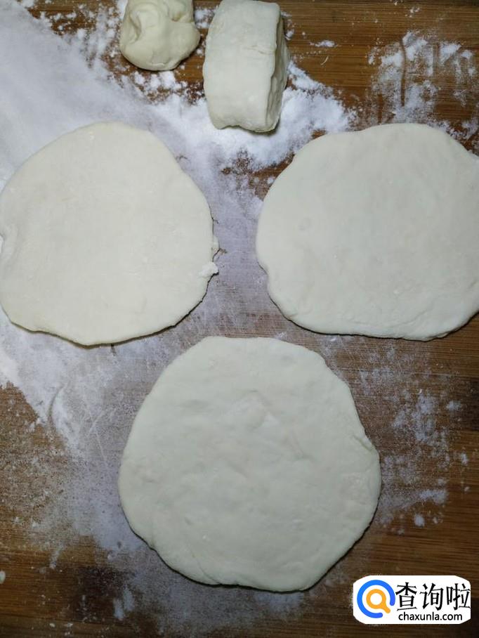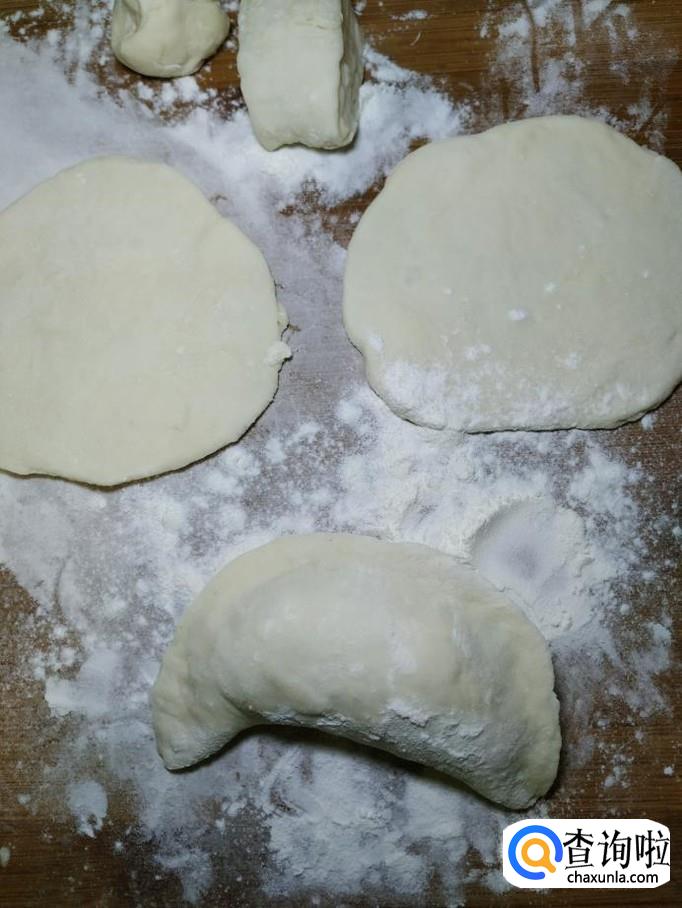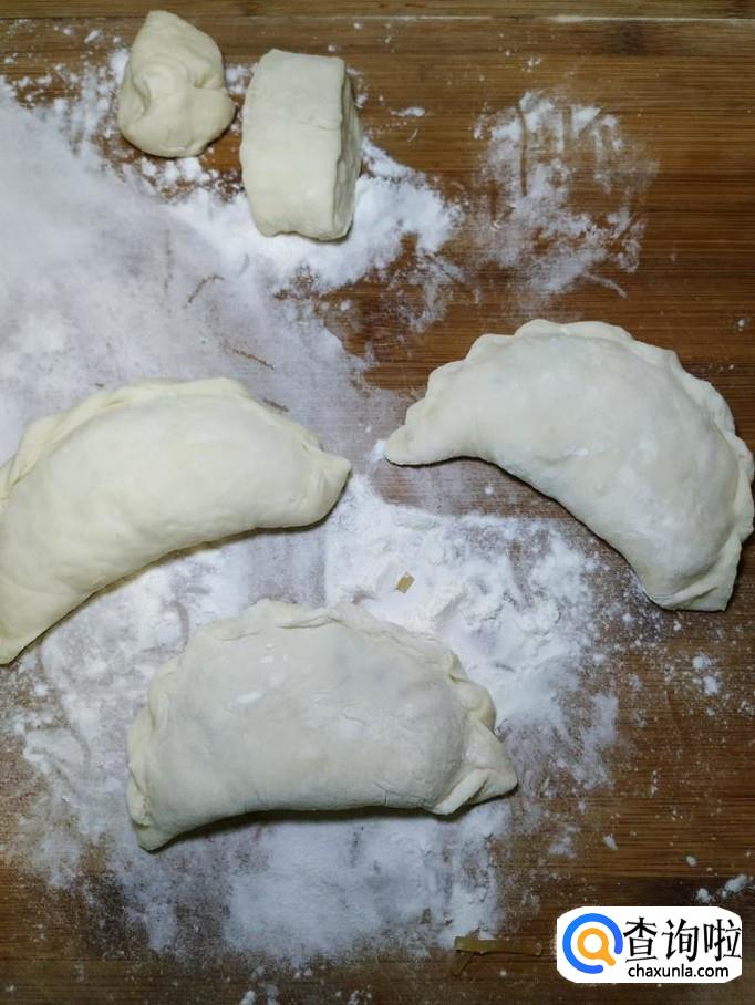 将分好的剂子,擀成薄片,然后将馅放在面片中间,用手捏成紧。