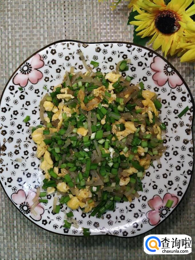 准备适量粉条,泡发后,和韭菜放在一起备用,粉条尽量切得碎一些,这样包起来更加容易。