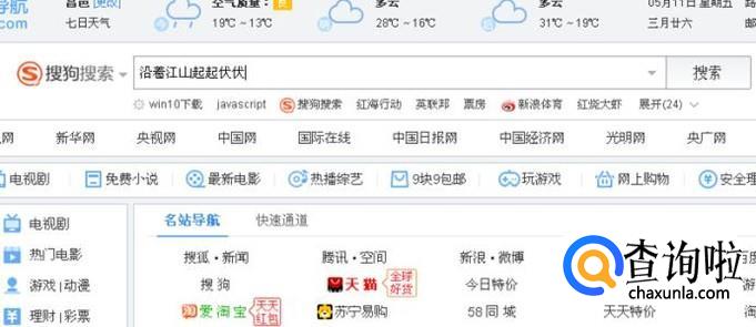 我们可以打开搜狗搜索,在搜索框里面输入你记住的一句或半句歌词,比如“沿着江山起起伏伏”,点击搜索。