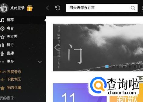 然后我们打开一个音乐播放器,比如酷我音乐,在搜索框里输入“向天再借五百年”,点击搜索。
