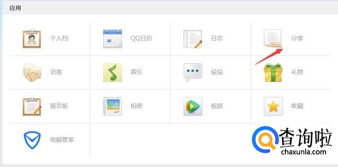 点击更多会出现其他的空间应用,其中就包括了分享。