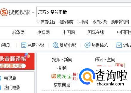 首先在搜狗浏览器中输入东方头条号申请,如下图所示。