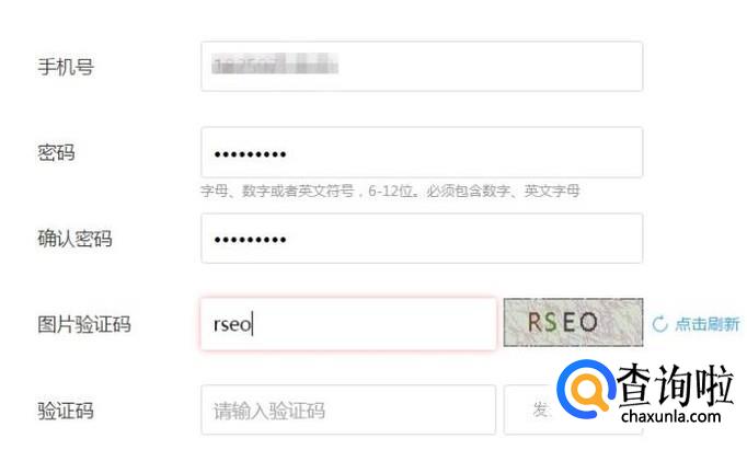 接着输入你的手机号码和密码并点击发送验证码,如下图所示。
