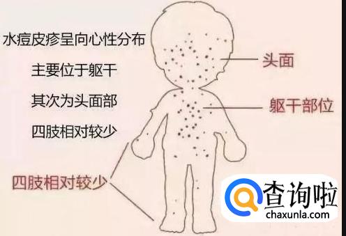 起初有感冒症状,1---2天后发热,出现数量多少不等、大小不一的疱疹。疱疹内含水液,边缘不完全整齐,周围有红晕。有剧烈瘙痒,因此,常有患者因瘙痒难耐而抓破疱疹使其破溃,导致感染。