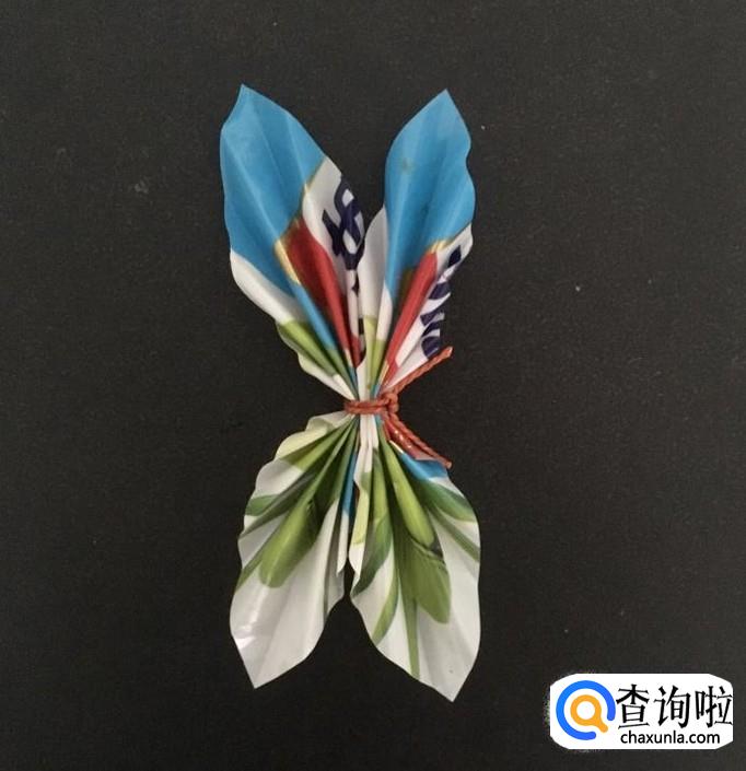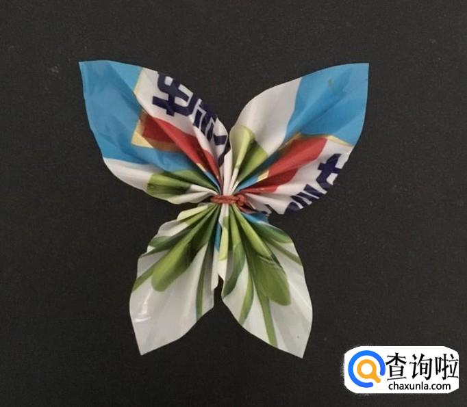 最后,整理一下糖纸,并稍微展开,这样糖纸就变成了翩翩起舞的蝴蝶。