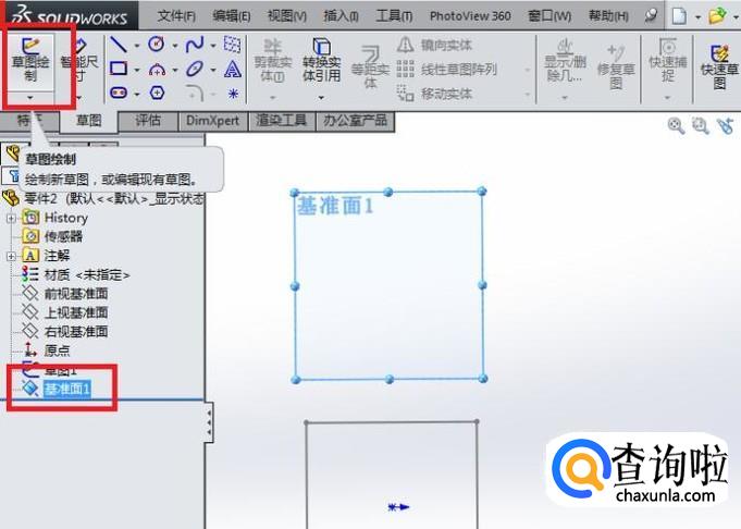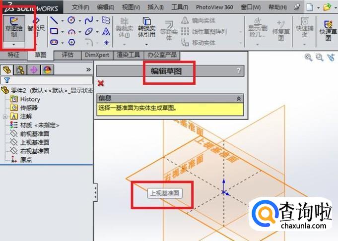然后软件就出现一个“编辑草图”对话框和三个基准面,