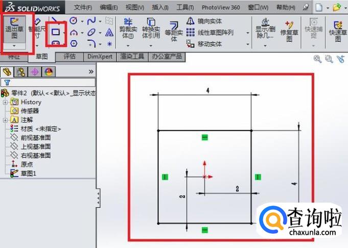 然后标注矩形尺寸:4x4,矩形中心点与坐标原点重合,