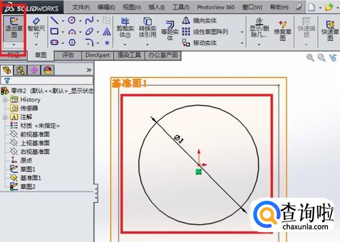 点击工具栏中的“智能尺寸”,标注圆的直径为3,