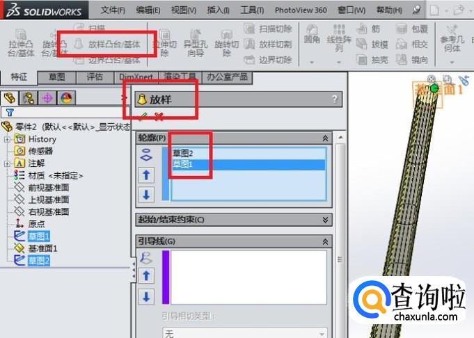 轮廓一栏选择刚刚画的两个草图,先后顺序无所谓,