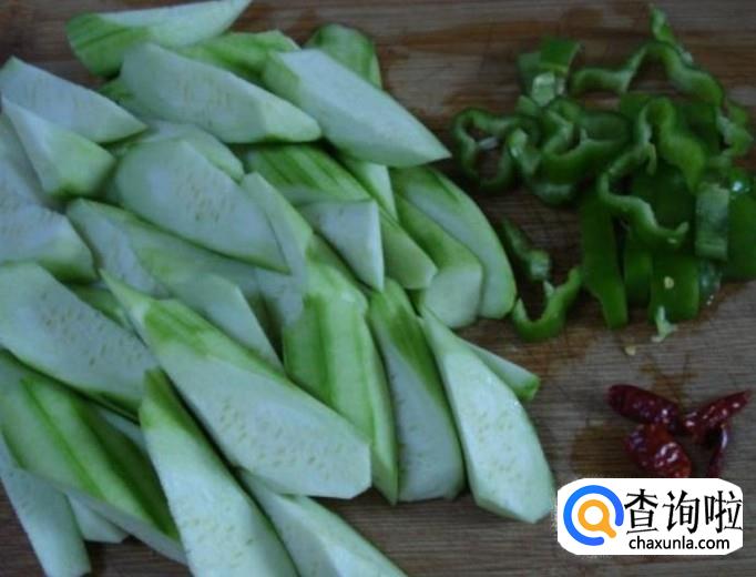 首先选择新鲜又嫩的丝瓜,去皮,洗净。滚刀切法,切成一小块小块的。喜欢吃辣的可以切一根青椒,这样可以让味道更鲜美。