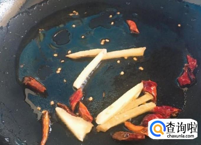 油倒入锅中,加热油温。将青椒,花椒,干辣椒倒入锅中入味。