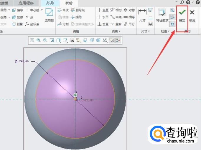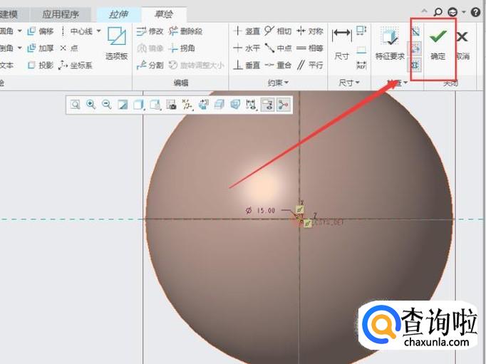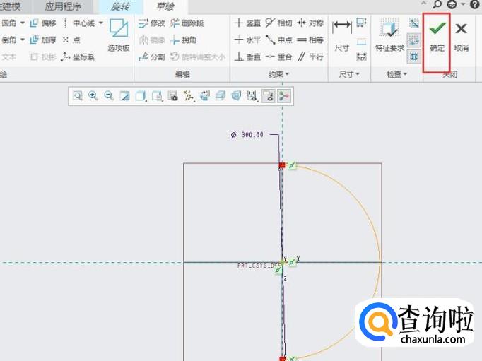 在草绘界面绘制一个半圆,然后点击“确定”即可,如图所示。