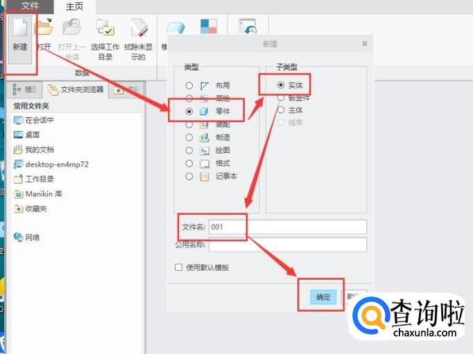 打开creo软件,创建一个新的零件,创建过程如图所示。