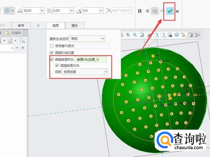 选择阵列的形状,在“选项”中勾选跟随曲面形状,如图所示。