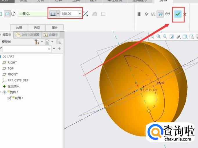 设置旋转参数,旋转角度为180度,最后点击“绿色对勾”即可,如图所示。