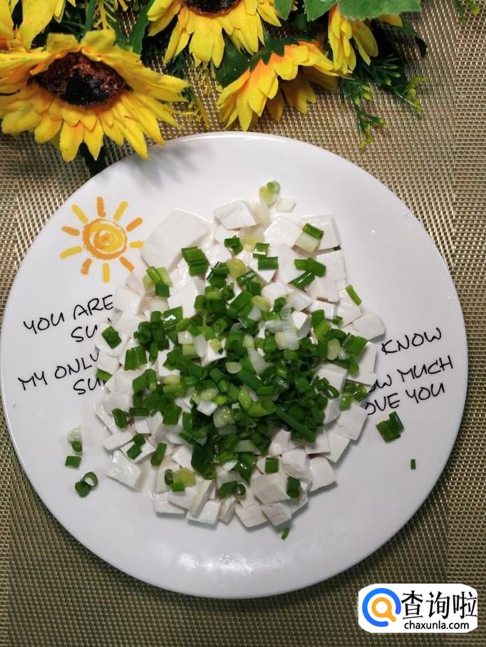 准备一块豆腐和适量小葱。这个菜属于凉拌菜,所以食材越新鲜越好,注意,我这里用的是嫩豆腐。