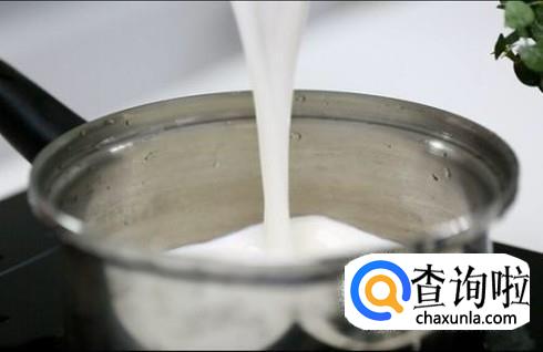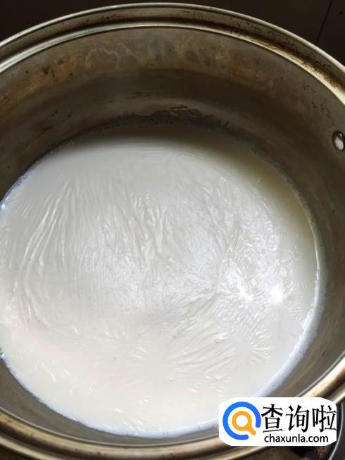然后在锅中加热适量的牛奶煮开后,稍微晾凉后备用