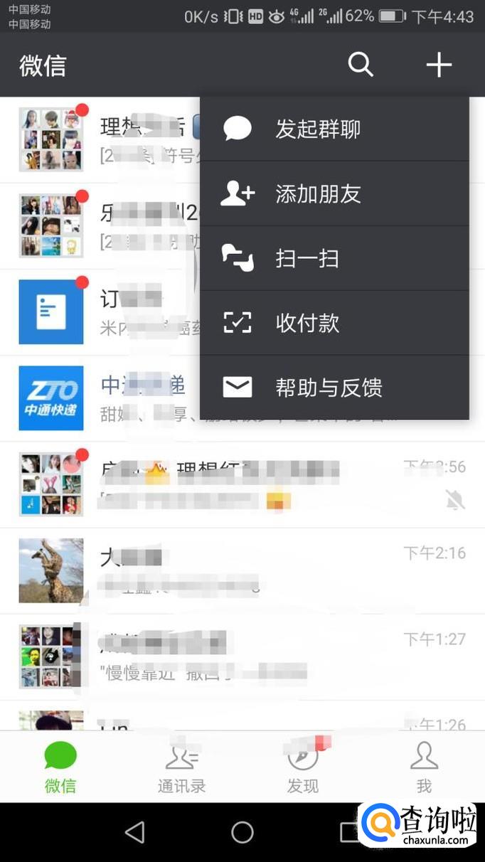 登录微信,点击右上角的“+”,再点击“收付款”,如图