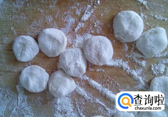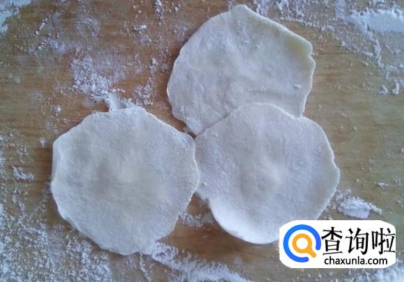 把饺剂子按压成小的圆饼,再用擀面杖把饺子皮擀好。