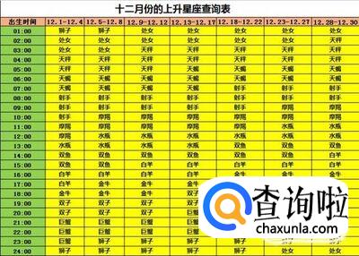 一般情况下,我们可以根据十二个月的出生日期和时间的对应,来查询出自己的上升星座。