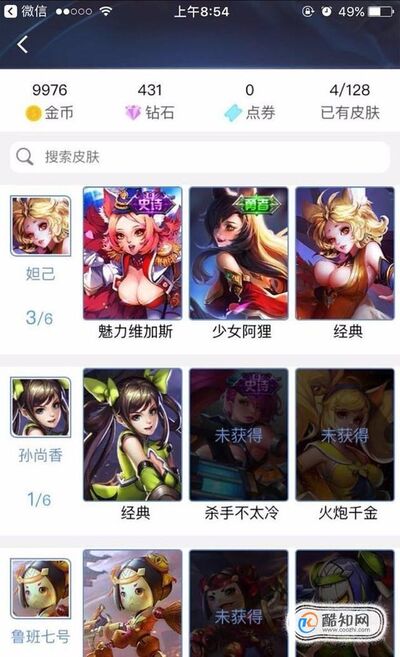 除此之外,你还可以点击英雄或者皮肤进去查看技能或者皮肤详情,还能查看该英雄拥有多少个皮肤。