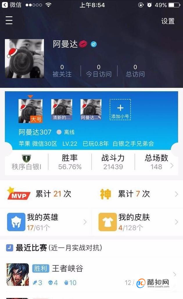 除了皮肤数量之外还能查看英雄数量以及个人的战绩胜率等信息。