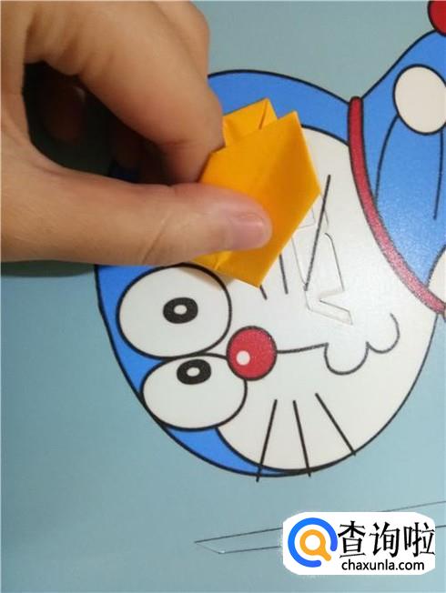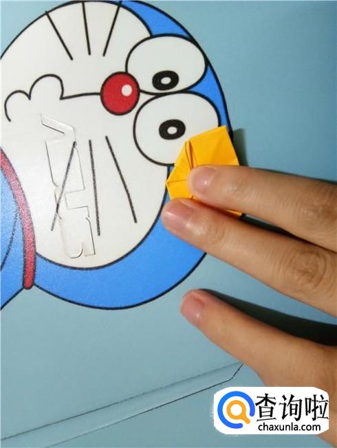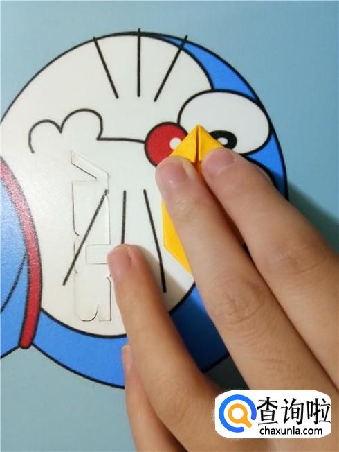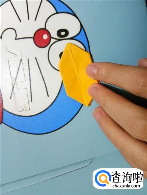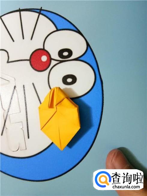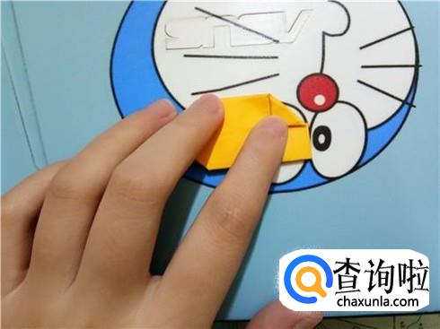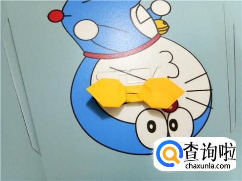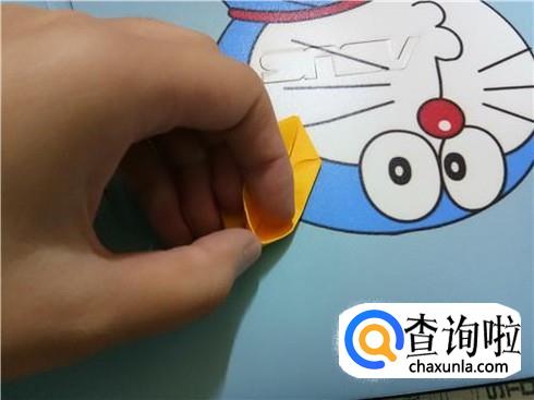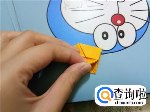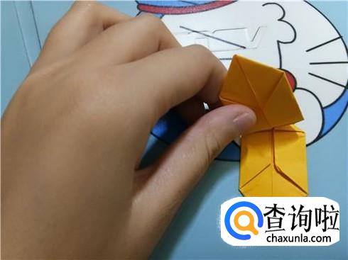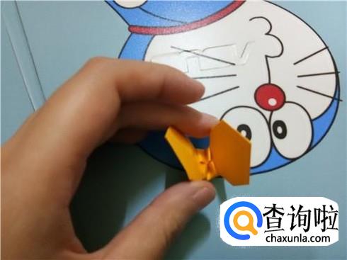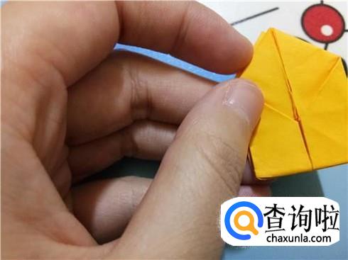 最后我们将他的下方的四个角轻轻地折叠成三角形的样子,再轻轻的将两边的部分扯开并且将中间的部分压平,这样一个蝴蝶结就折好了。